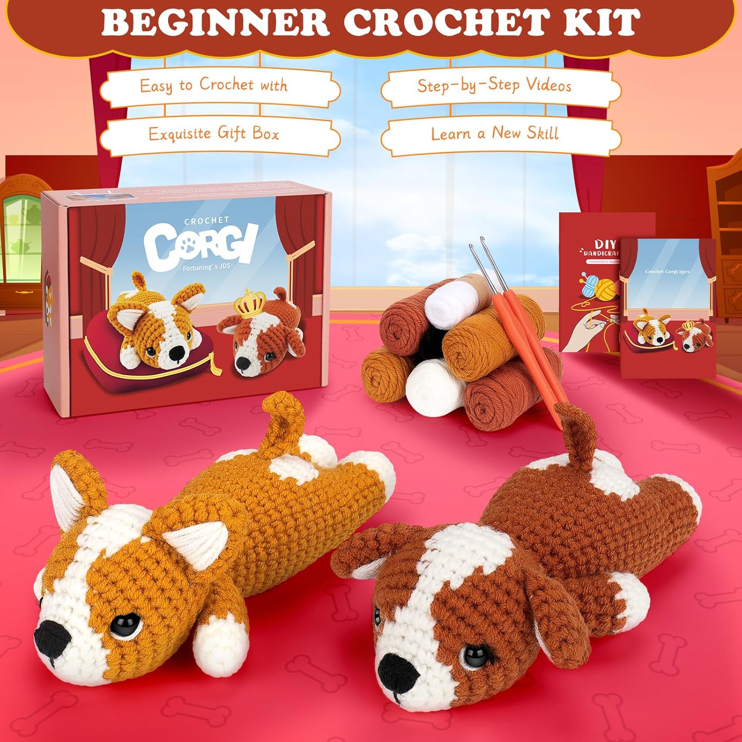 【Step-by-Step Video Tutorials 】 Our crochet kit for beginners adults comes with a detailed, step-by-step corgi pattern booklet + a basic crochet manual and QR codes for video tutorials, guiding you through each stitch and technique from start to finish. Learning how to crochet your first amigurumi has never been so simple and fun!