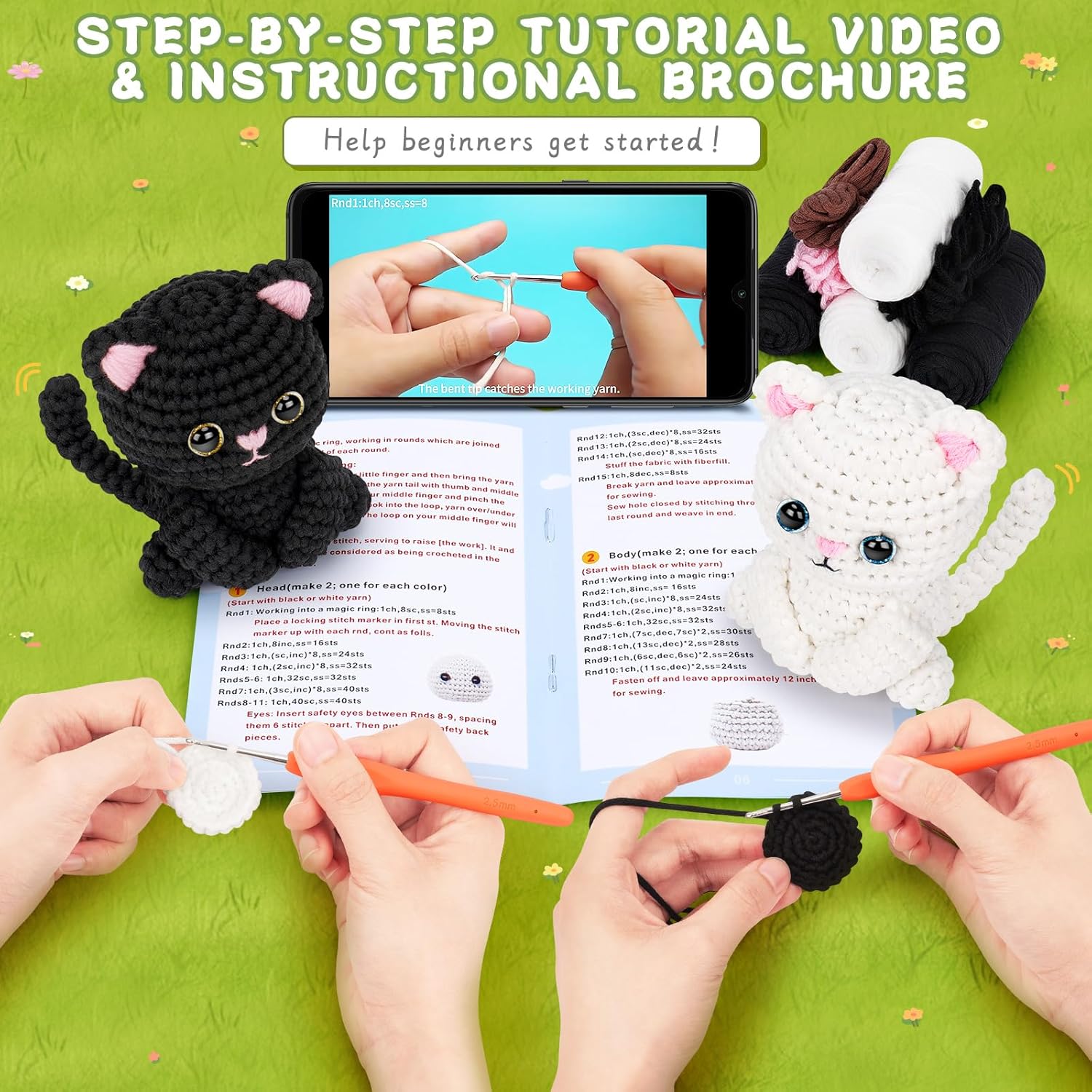 🐱 Step-By-Step Video Tutorials: Our crochet kit for beginners adults comes with detailed manuals and video tutorials tailored for beginners, guiding you from start to finish. Even those who have never crocheted before can dive into their first amigurumi project.