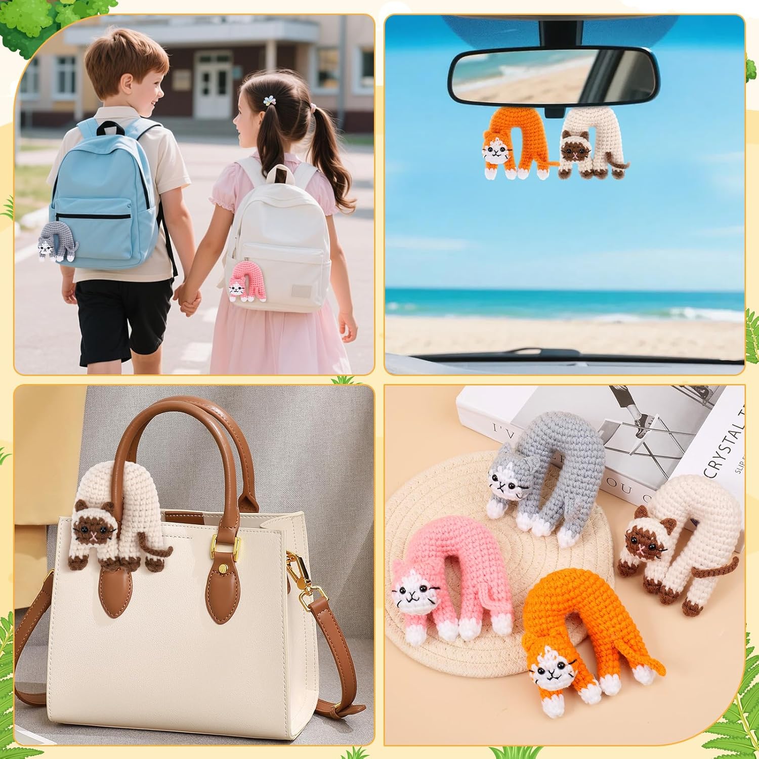 Create 4 Arched Back Cats: Make your own set of handmade crochet cats with four different cat color patterns, including an orange tabby, a siamese, a classic grey, and a playful pink kitten. The funny finished cats are perfect as home decorations, desk buddies, adorable children's toys, car pendants, bedroom ornaments, bag charms, or key chain.Perfect for cat lovers and crochet enthusiasts.