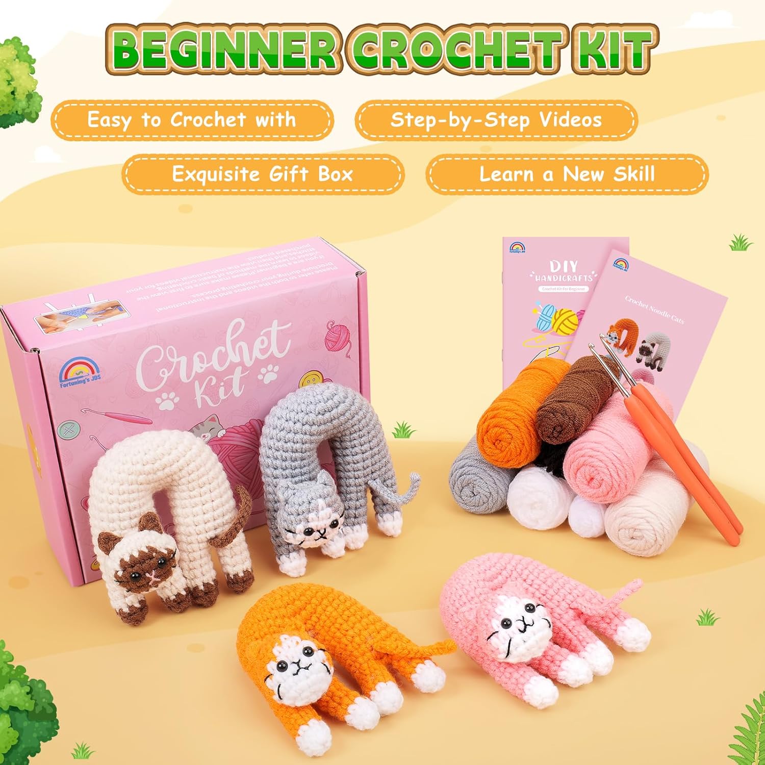 All-In-One Crochet Starter Kit for Beginners: Unbox everything you need to create four delightfully quirky cat creations! This complete starter cat crochet kit includes enough yarn for crocheting, crochet hooks, eyes, soft stuffing, fuzzy sticks, yarn needles, stitch markers. and of course, our easy-to-follow instructions and video tutorials.Follow along easily with our step-by-step video tutorials. With this complete crochet cat kit, no extra trips to the craft store are needed!