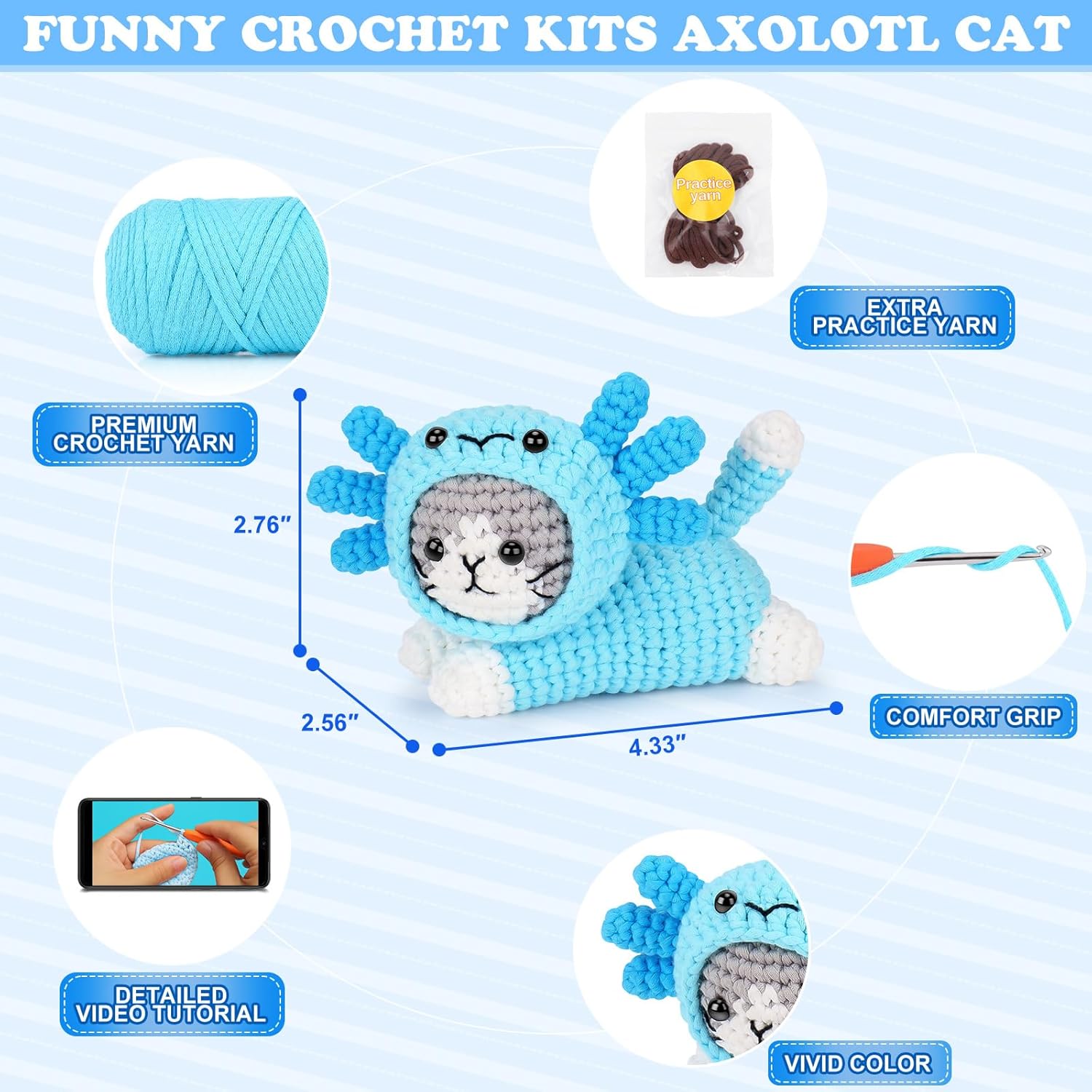🧶Unique Design: Cat Meets Axolotl - This cat knitting kit brings to life a whimsical character: a charming kitten cozies up in a pink axolotl costume, ready to pounce on a ball of yarn. Perfect for cat lovers, craft lovers and anyone who loves unique handmade crafts and whimsical designs.