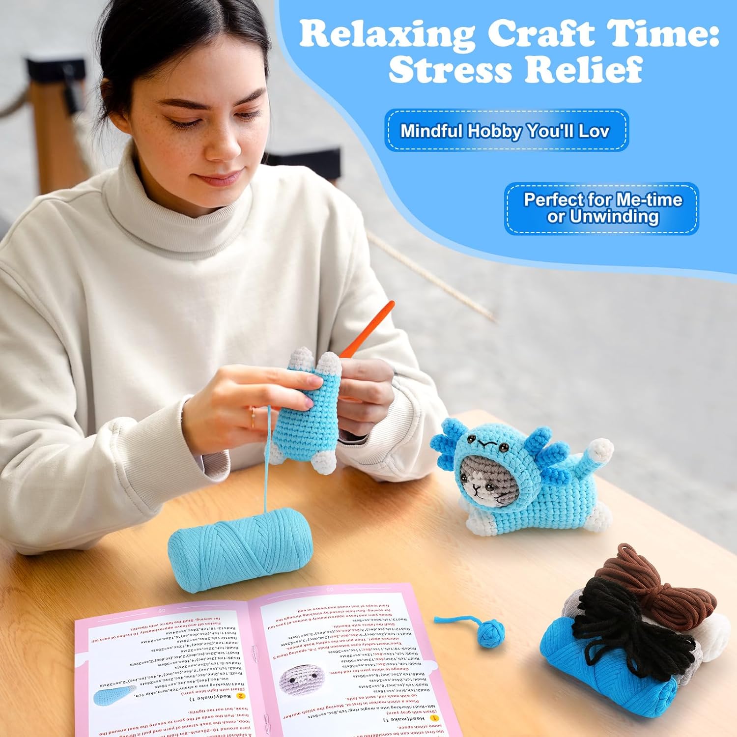 🧶A mindful, screen-free experience in a box! This amigurumi crochet kit is the perfect, ready-to-give present for Birthdays, Christmas, Teachers' Day, Valentine's Day, Mother's Day. Ideal crochet gifts for crafters, cat lovers, and anyone curious about knitting or DIY. The finished Axolotl Cat becomes a home derorations, kid’s toys, bedroom ornament, or car charm. It's the crochet gift of a relaxing new skill and a handmade friend.