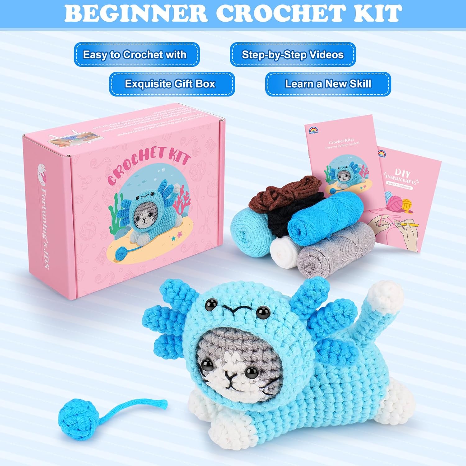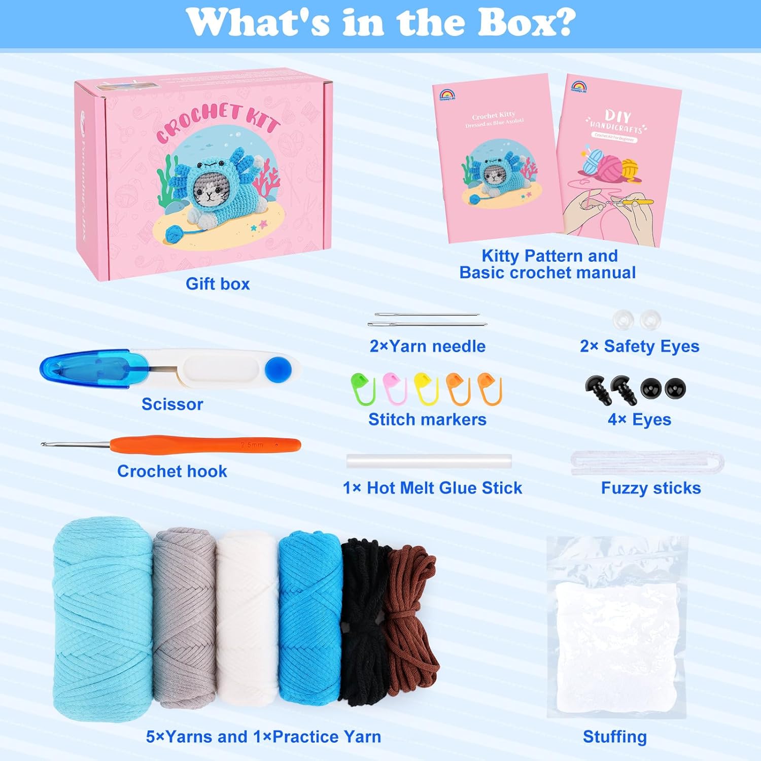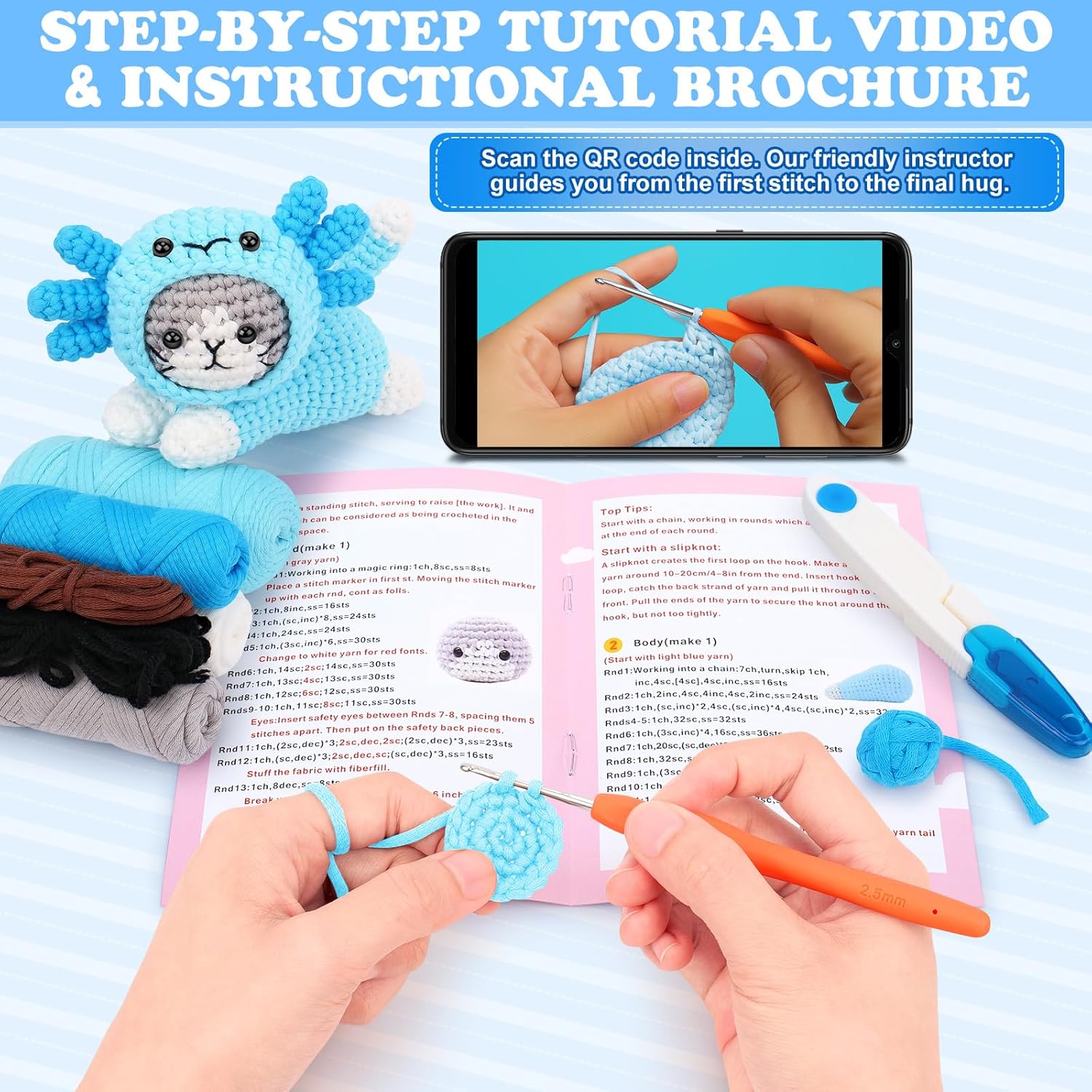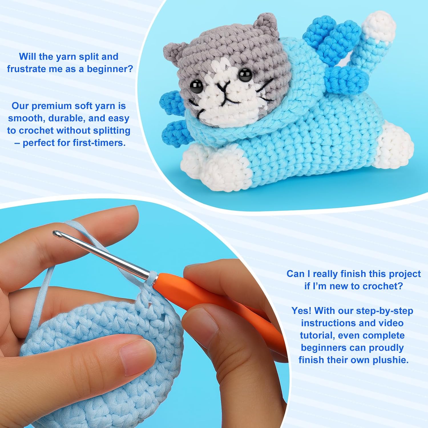 🧶 Everything You Need, All in One Box - No extra trips to the craft store! This crochet starter kit inicludes all crochet accessories: multiple skeins of our premium beginner crochet yarn, comfort-grip ergonomic crochet hooks, soft stuffing, eyes for crochet animals, needles, scissors, stitch markers, and a full-color instruction booklet with your step-by-step video tutorials guides access QR code. Just open the beautiful, gift box and start making your own cat crochet right away.