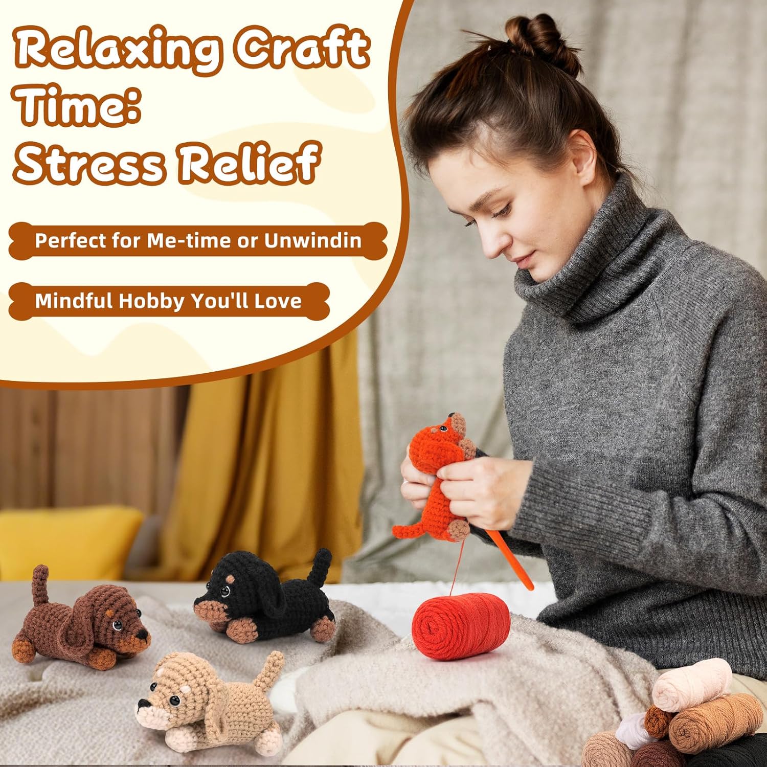 Learn a New Skill & Relax: Step away from screens and find your inner peace. Crocheting is a proven way to reduce stress, improve focus, and boost creativity. Whether you are 12 or 80, completing these cute puppies gives a wonderful sense of accomplishment. Our beginner crochet kit for adult is perfect for DIY classes or as a relaxing meditation.
