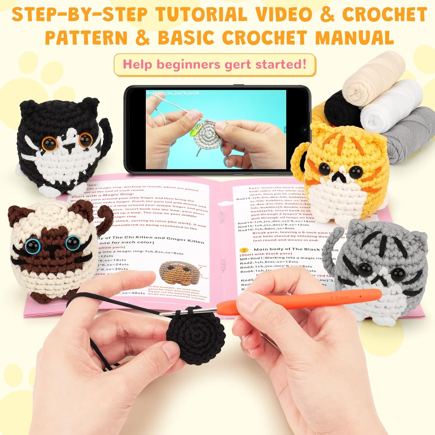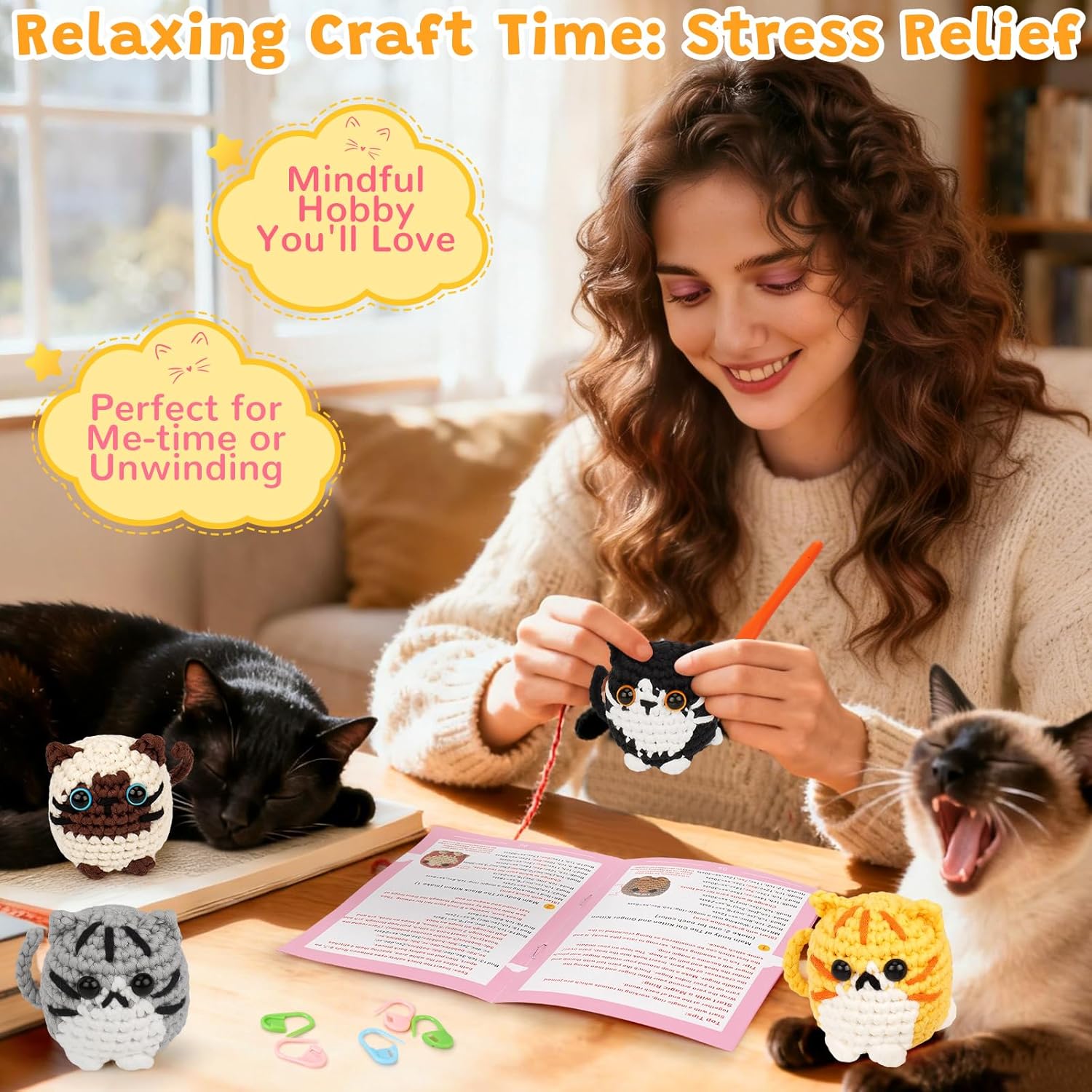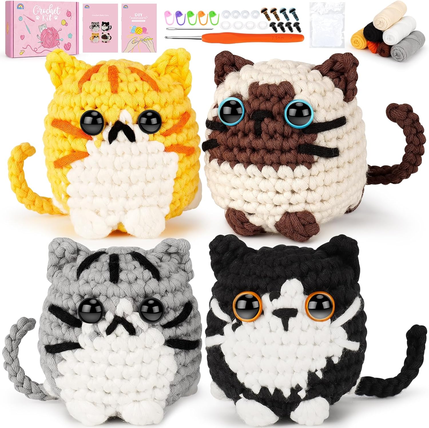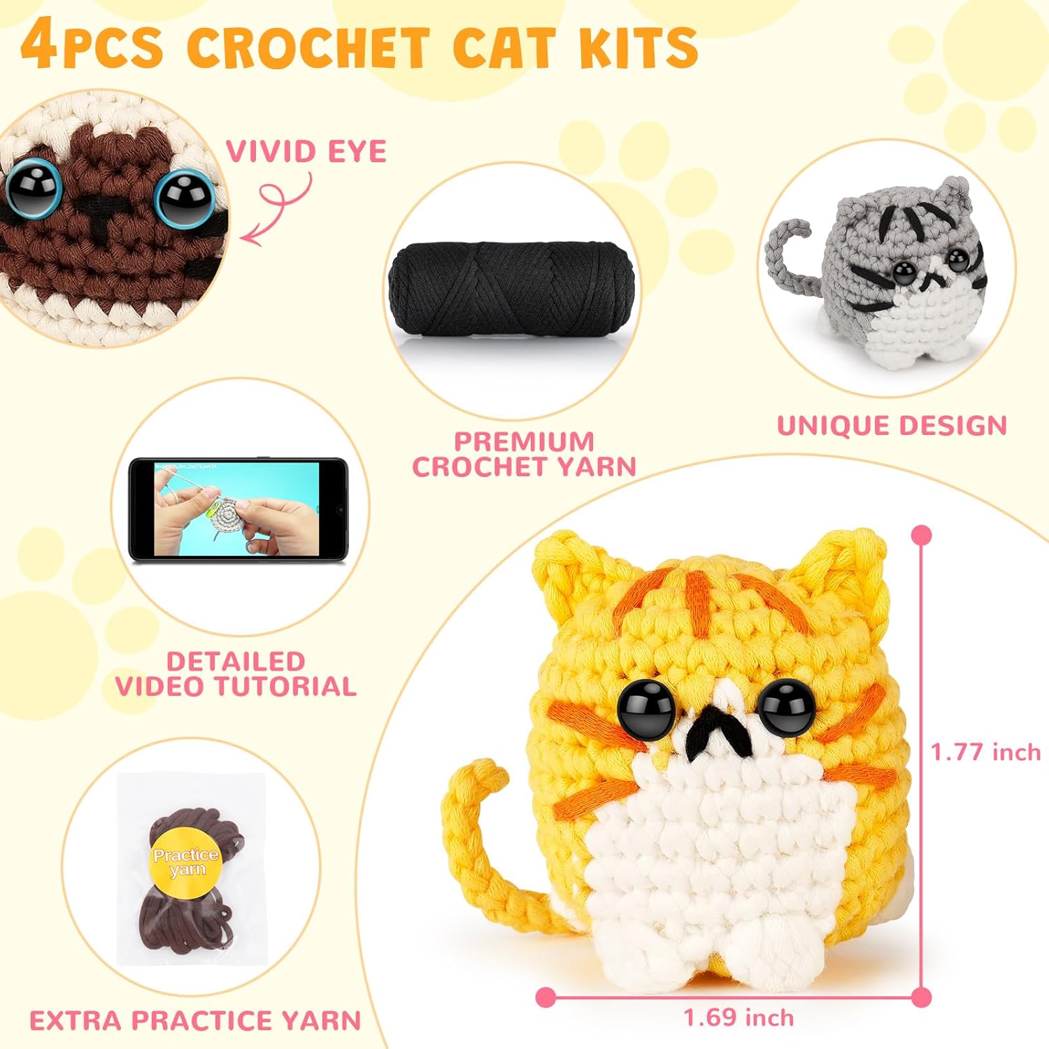 Create 4 Cat Companions: This crochet cat kit includes everything you need to create 4 cute amigurumi cats — Siamese cat, black cat, orange cat and tabby cat. One kit, four lovely handmade animals. The finished crochet cats can be used as a home decorations, car pendants, bedroom ornaments, bag charms, or key chain. Enjoy the joy of craft and the pride of making your own cute animal figures.