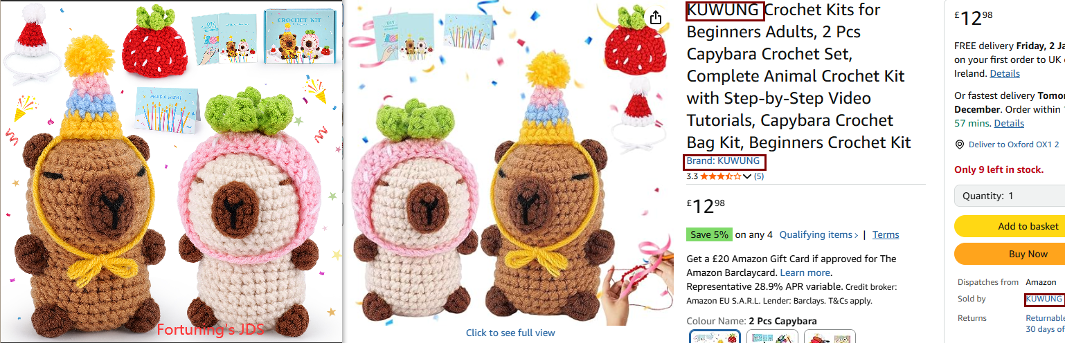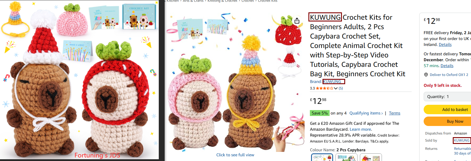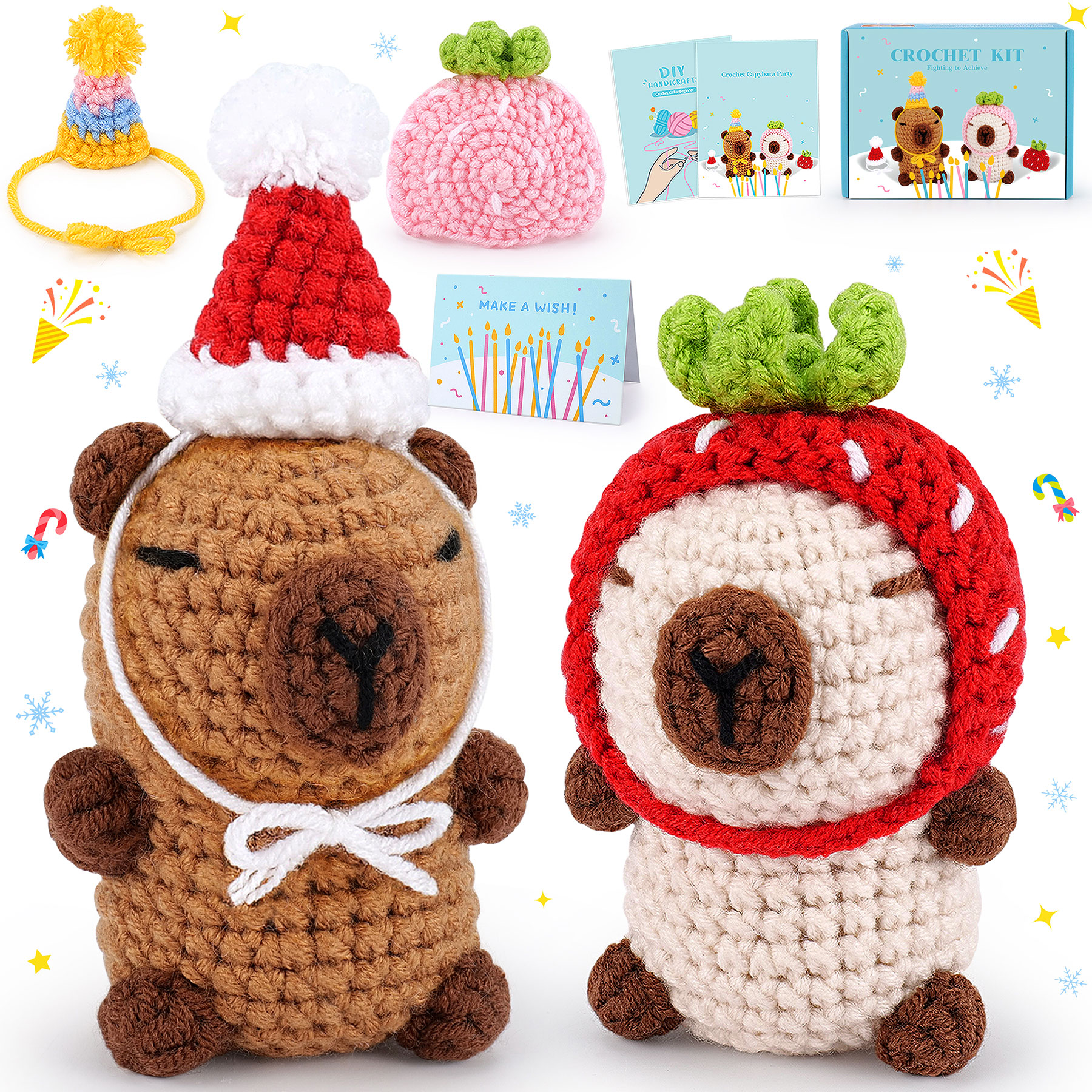 Fortuning's JDS 2pcs Capybara Crochet Kit for Beginners with 4 Hats Animal Knitting Kit with Step-by-Step Video Tutorials